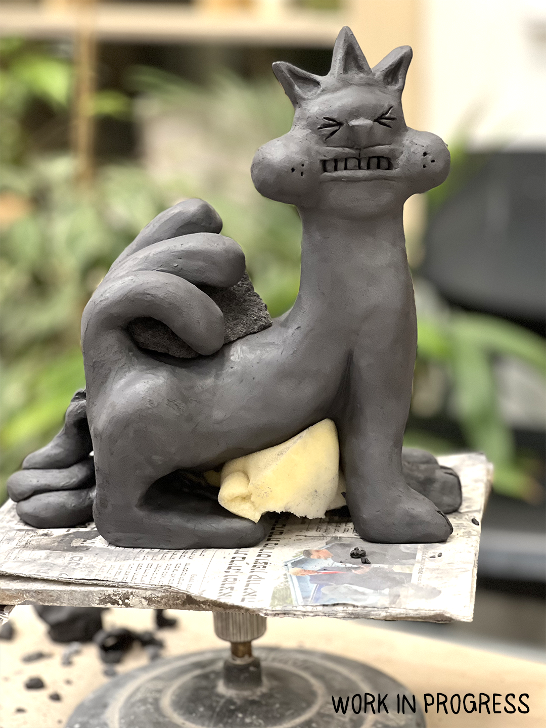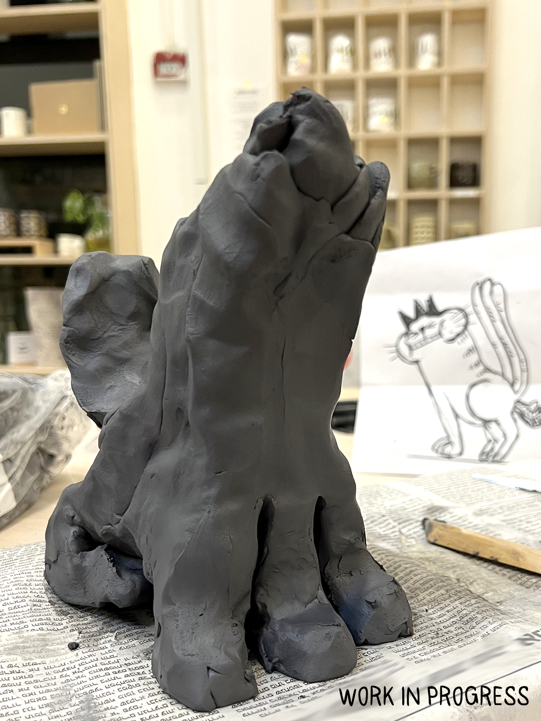 פסל קרמיקה מחימר שחור.