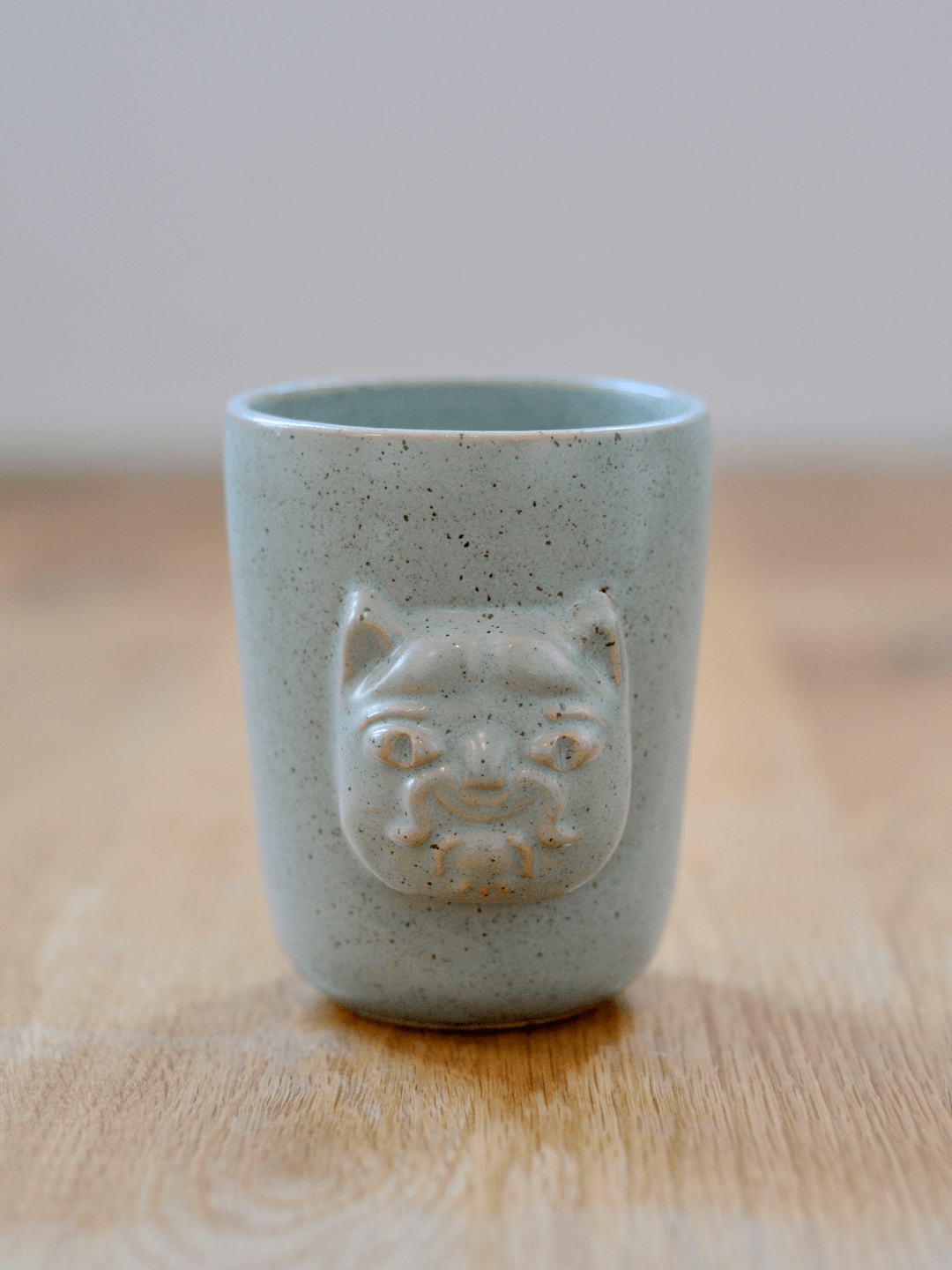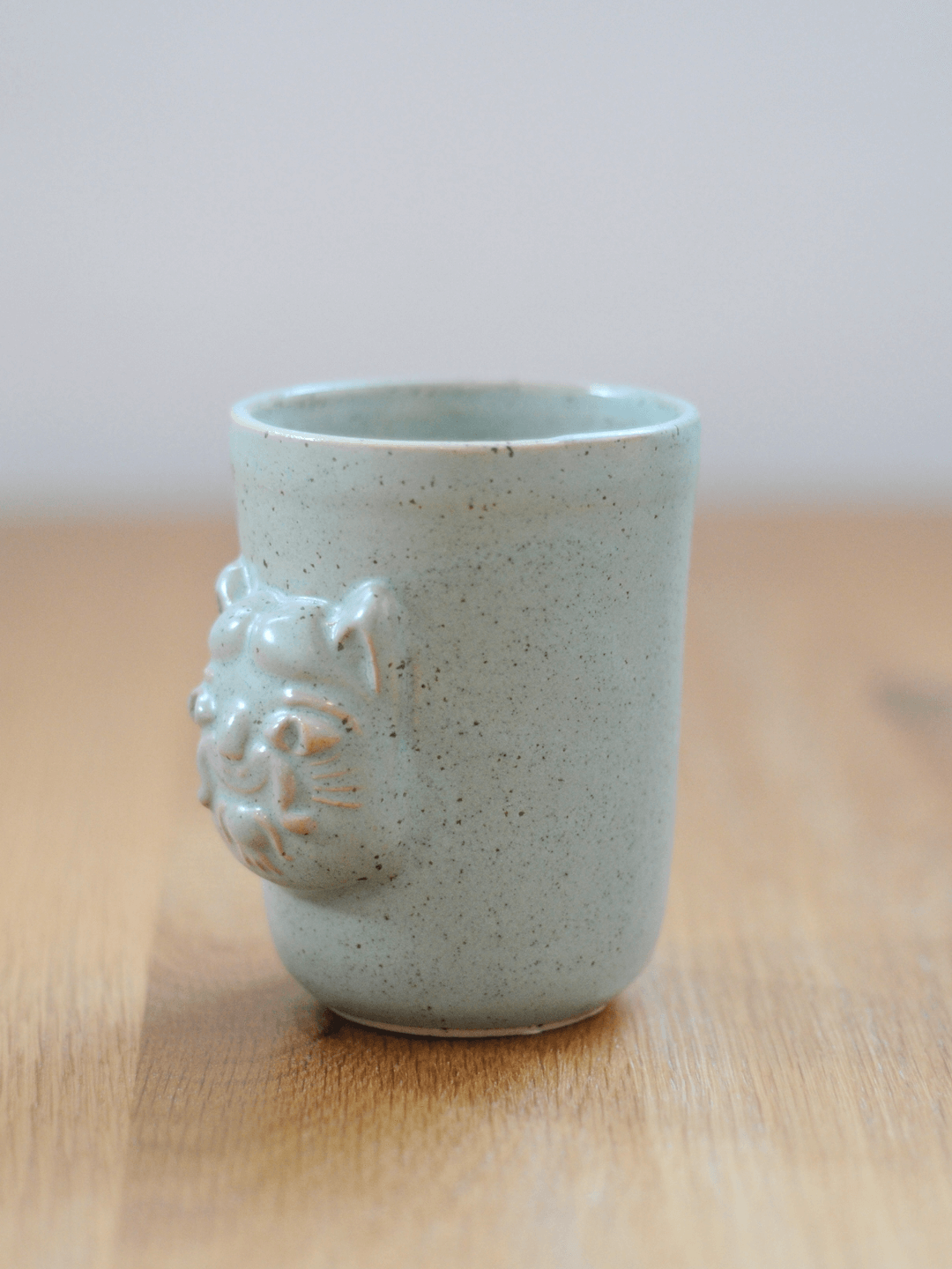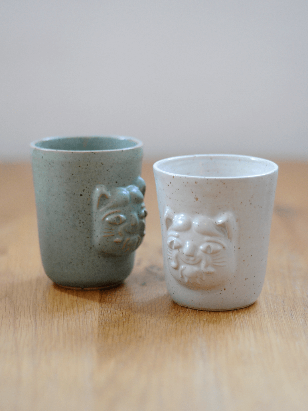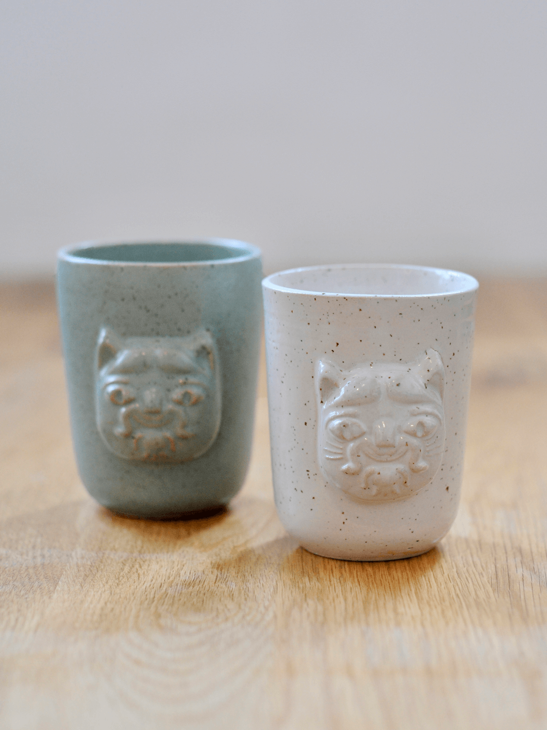 החתול מיץ‑אל בתבליט משמח, מעוניין לארח לכם לחברה בעת שתיית קפה, תה, או כמובן מיץ!