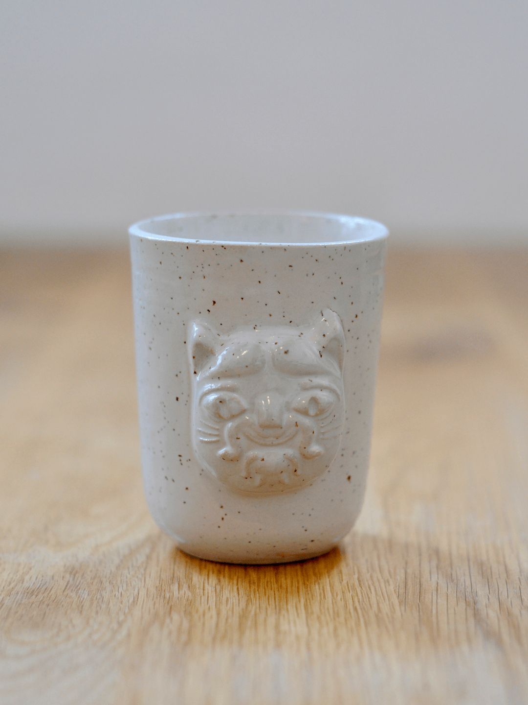 חימר לבן מנוקד בעבודת יד עם גלזורה לבנה‑משי.