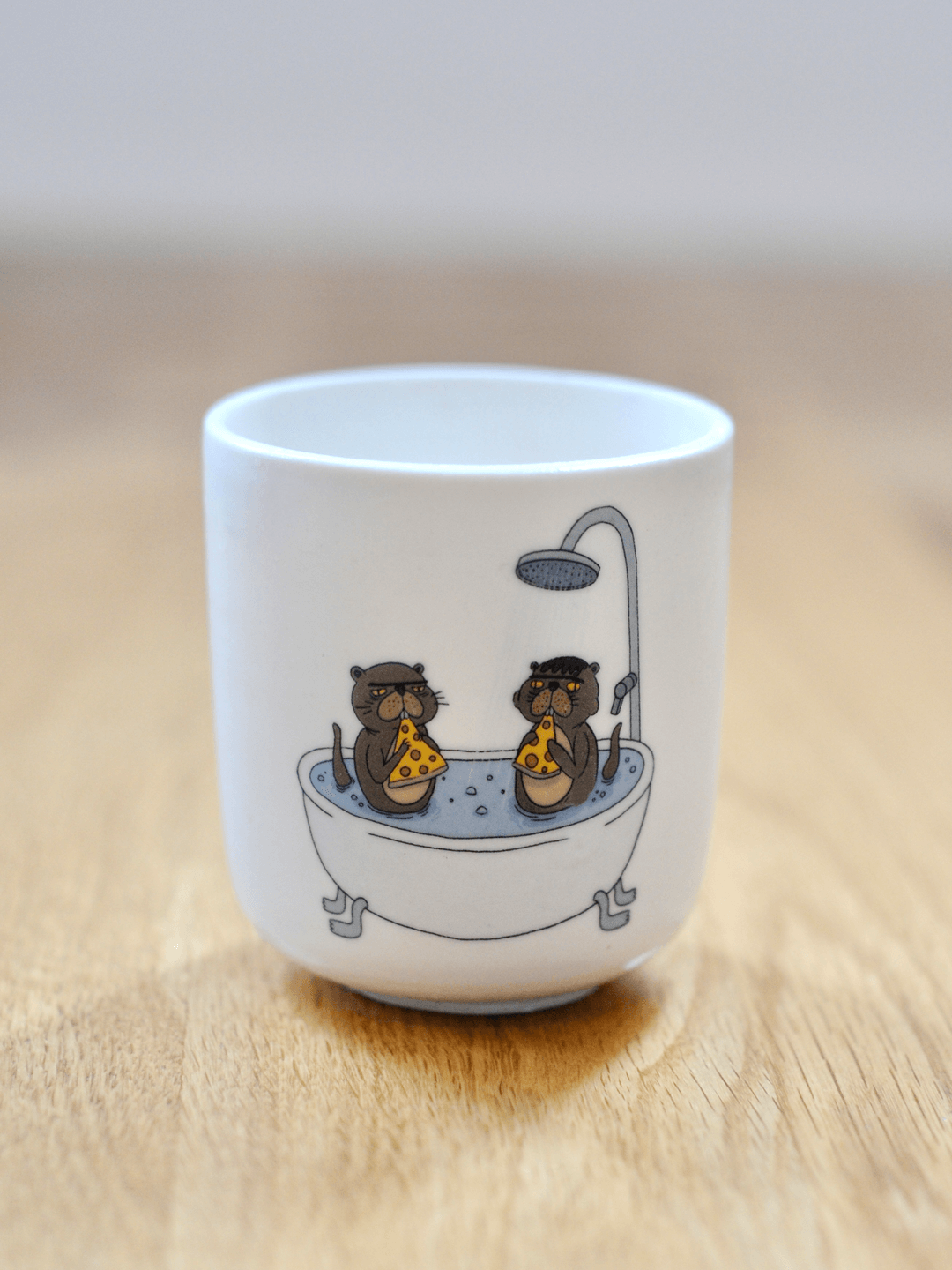 ספל - לוטרות אוכלות פיצה באמבטיה