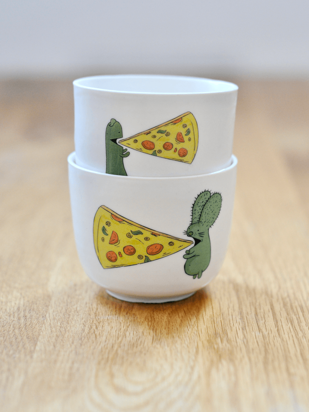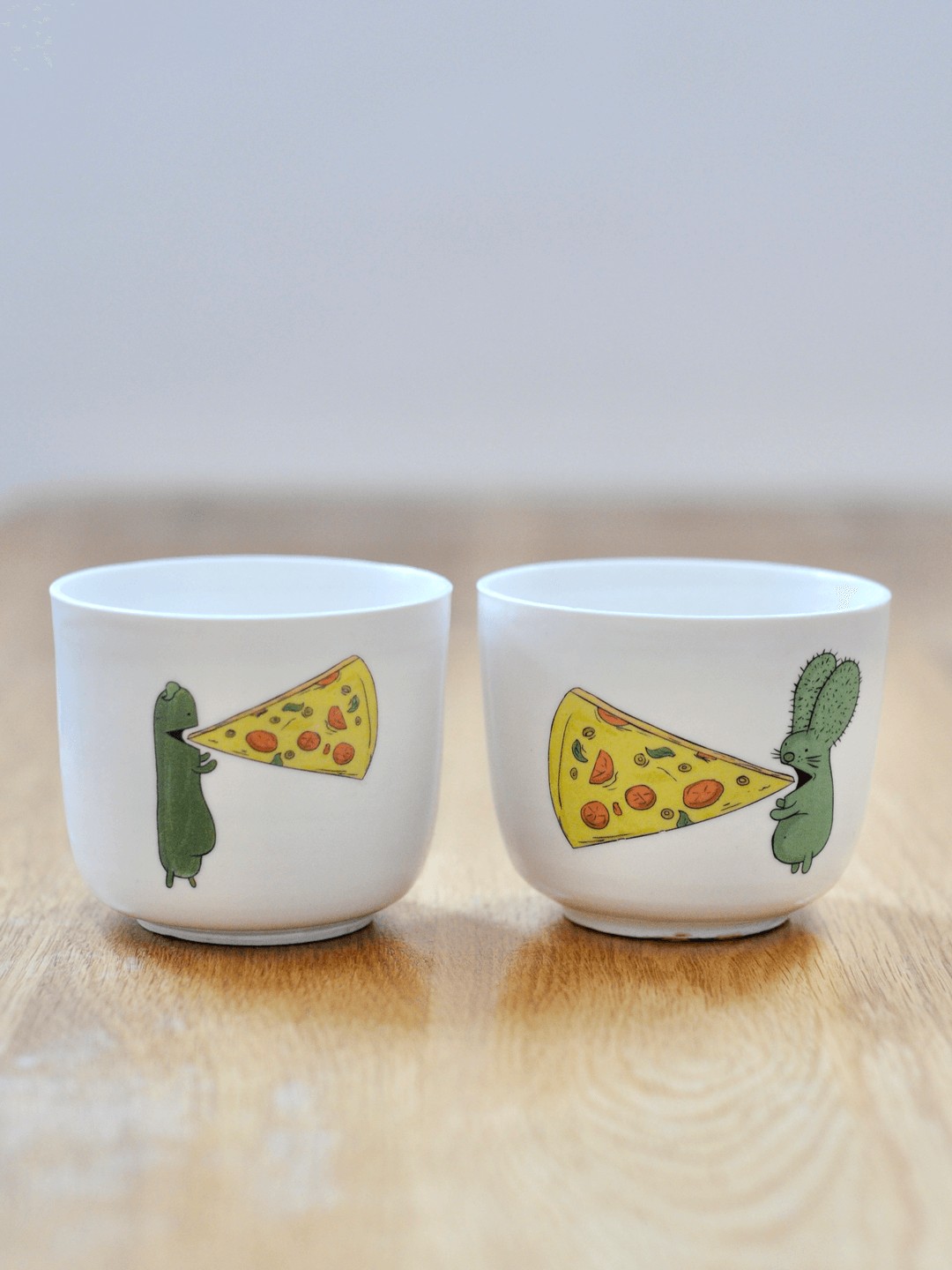 רבטוס וקאמבר בסט של שני ספלים, אוכלים משולשי פיצה.
