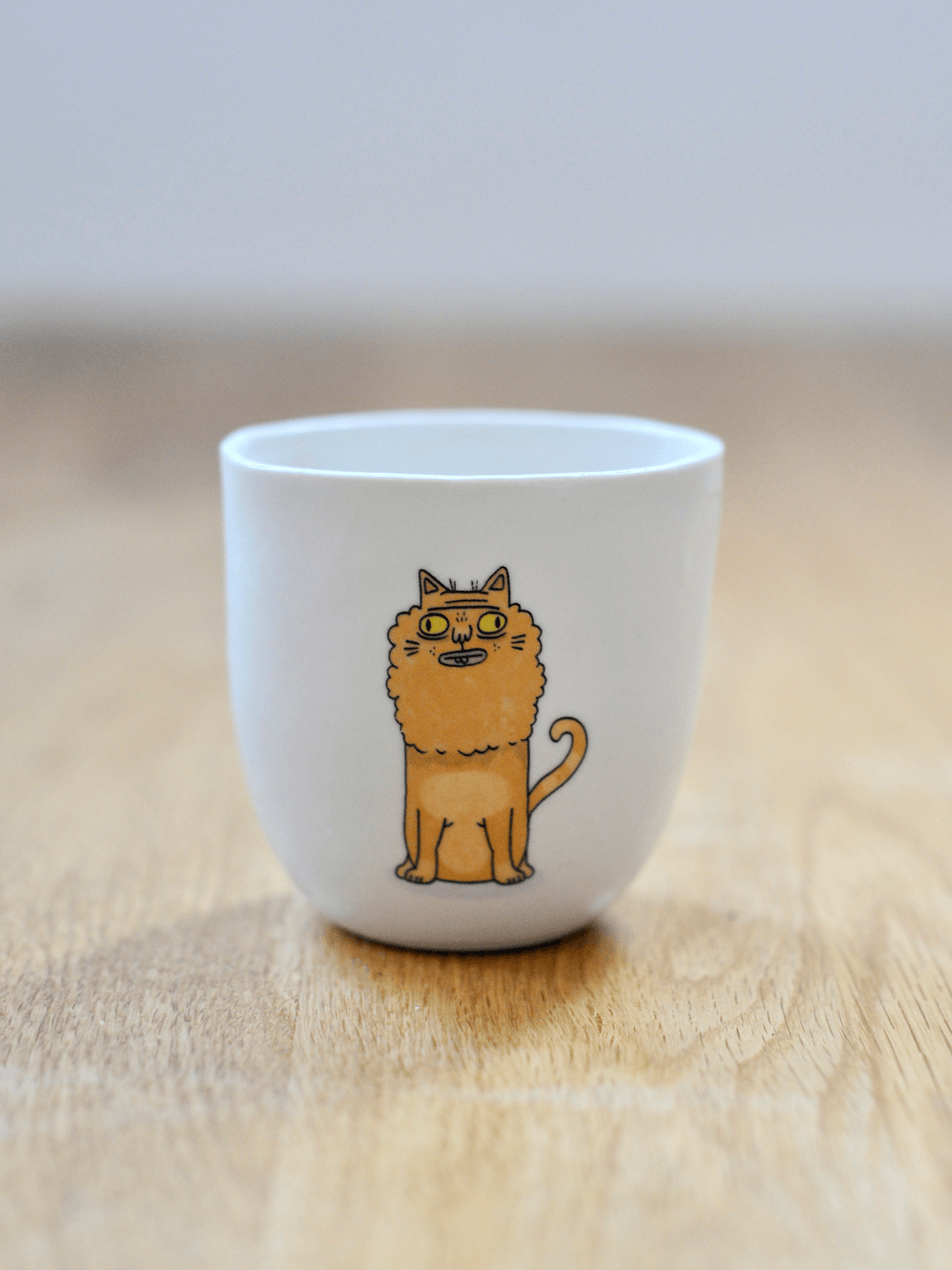 ספל פורצלן בעבודת יד עם גלזורה שקופה.